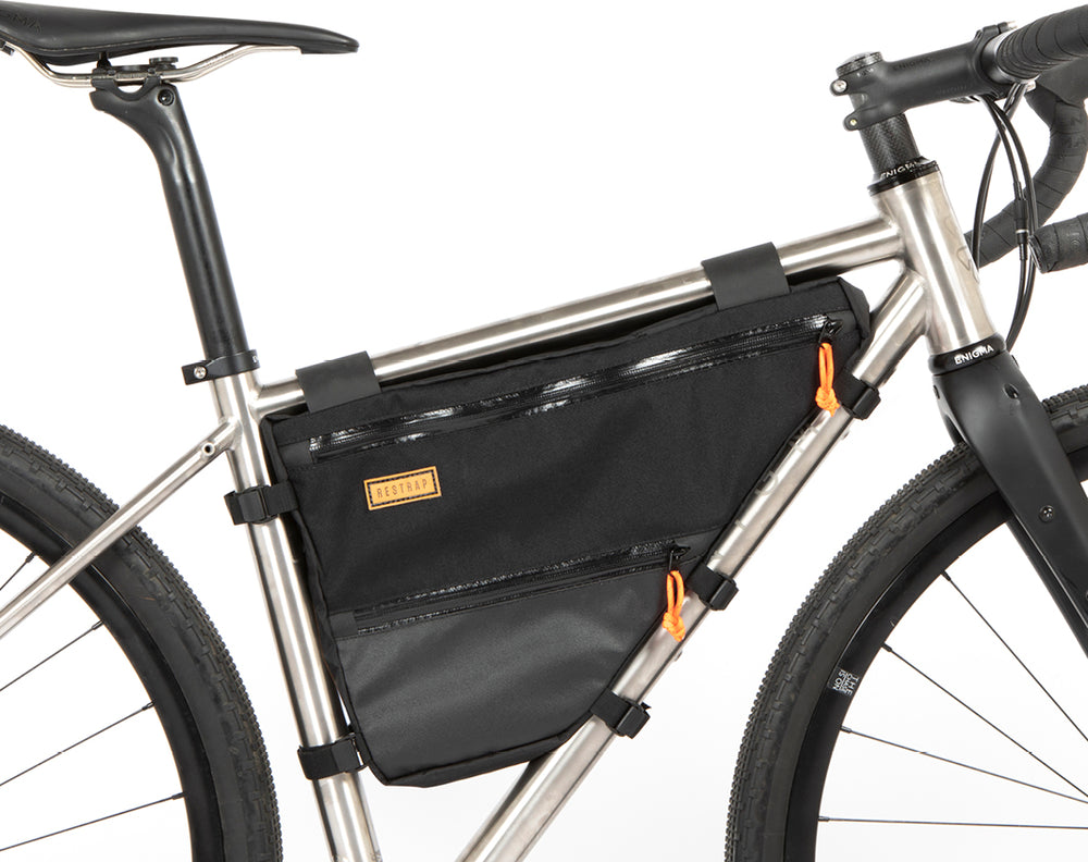 The Restrap Full Frame Bag allows you to easily increase the load out you carry for comfortable bikepacking and touring. The bags come in three sizes, designed to fit most standard frames and geometries.