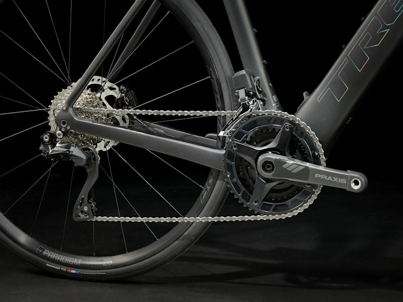 A road-specific tune, narrow Q factor, and intuitive mode change buttons on the hoods make Domane+ SLR feel and handle like a traditional bike with the added benefits of electric.