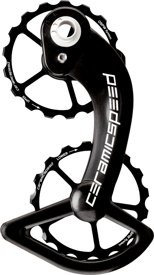 The upper and lower 17-tooth oversized aluminum pulley wheels come fitted with either standard or coated CeramicSpeed Bearings.