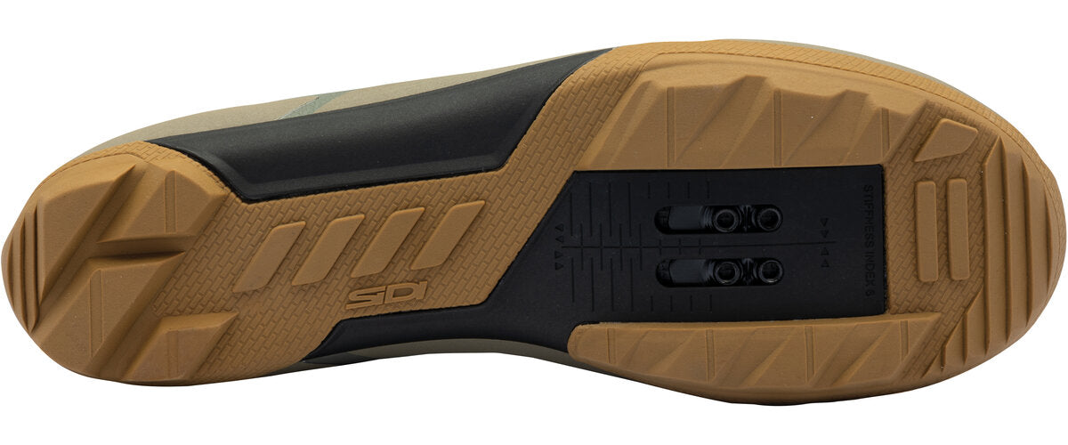 -A nylon plus glass fiber sole has a minimal stiffness level to keep you comfortable while riding and throughout the day