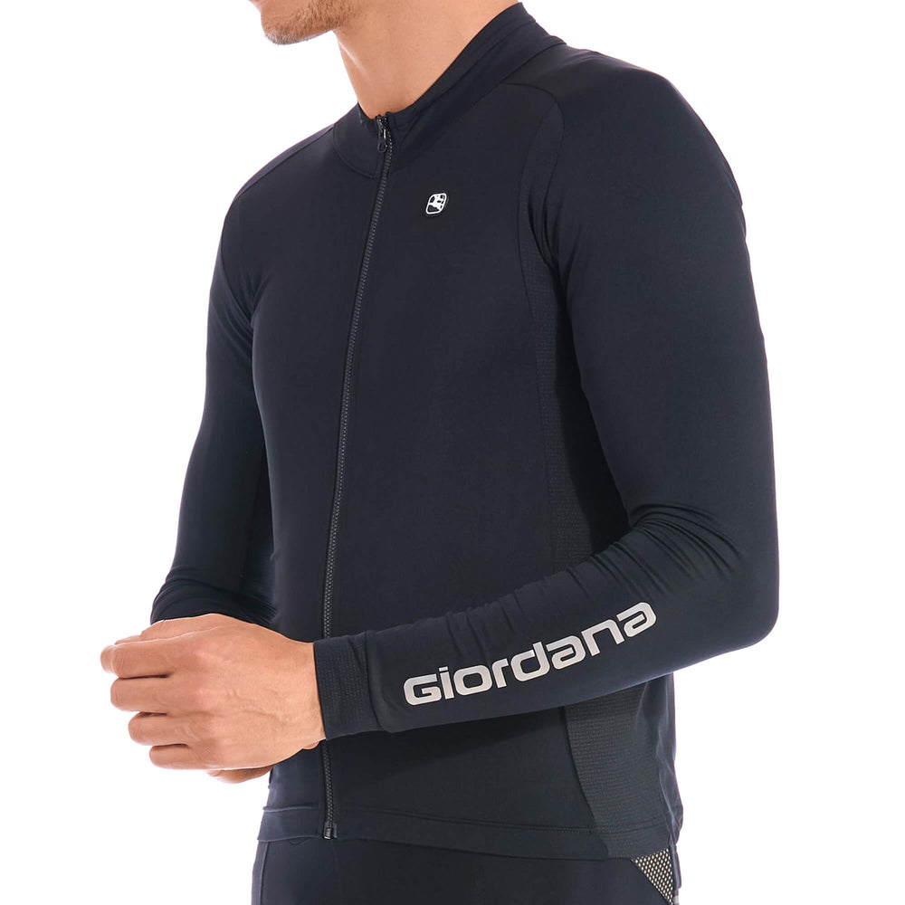 Reflective accents include the Giordana logo on the left arm, rear waistband, and reflective zippered pocket at the back – important accessories for safety in inclement weather and low light conditions. Three rear cargo pockets, with an additional zippered closure pocket above them, ensure safe storage of your small essentials. The fabric, fit, and lightweight warmth of this jersey will make a difference every time you get out and ride.