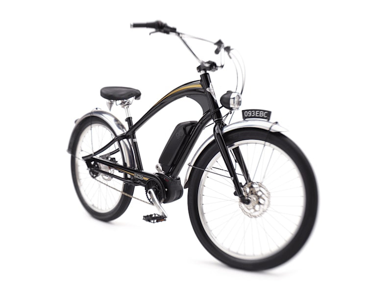 The Ghostrider™ Go! is inspired by the world's first "superbike" motorcycle, famous for its power and speed. A hydroformed frame, ultra-gloss black and chrome polish finishes, and license plate seamlessly combine retro style with modern e-bike technology.