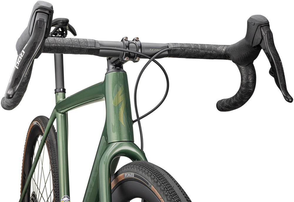 | Wheels | F: Roval Terra CLX II, 25mm internal width, Tubeless ready, 32mm depth, 21h, Roval AFD1, Centerlock, DT Swiss Aerolite spokes R: Roval Terra CLX II, 25mm internal width, Tubeless Ready, 32mm depth, 24h, Roval AFD2, Centerlock, DT Swiss EXP internals, SRAM XDR, DT Swiss Aerolite spokes |